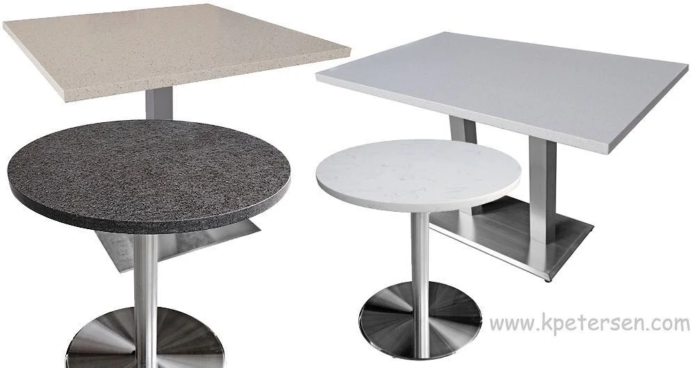 The standard eased edges and corners provide a finished appearance. #MesaQuartz ® table tops are scratch, stain, heat resistant and sanitary.